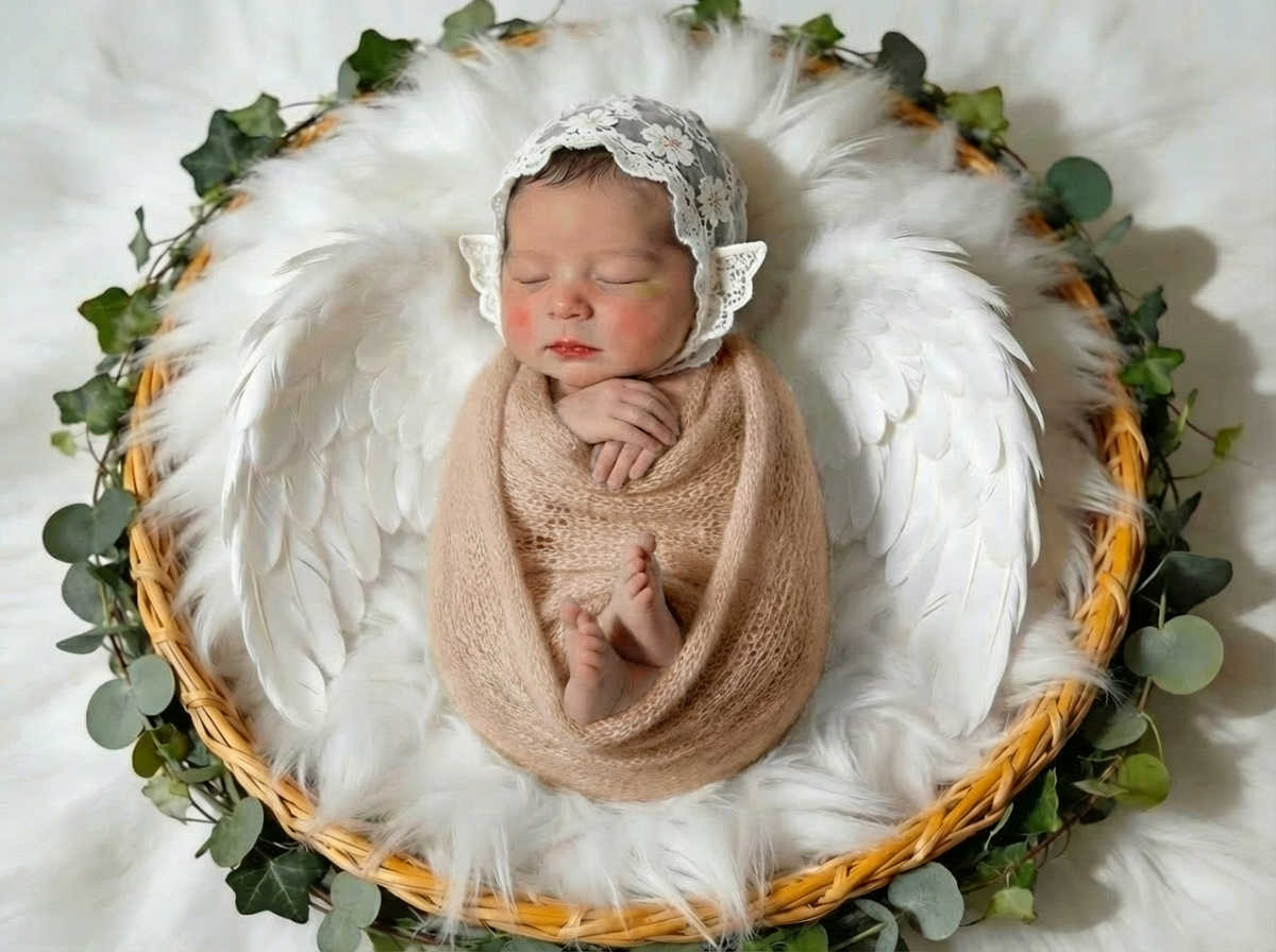 赤ちゃんとママにやさしいAIニューボーンフォト特別な撮影は不要で、お客様が撮った赤ちゃんの寝ている写真データだけで作成いたします。